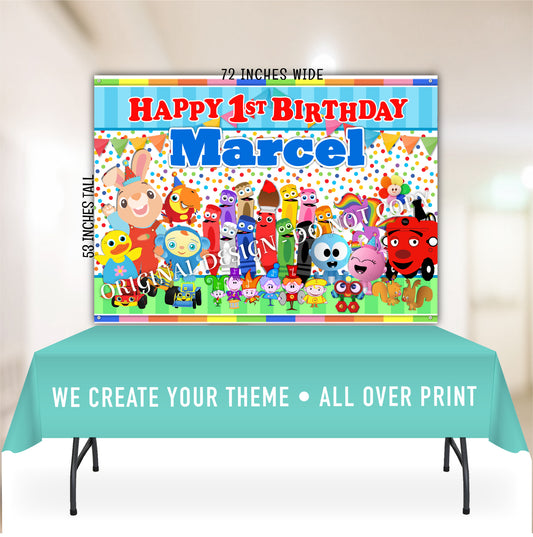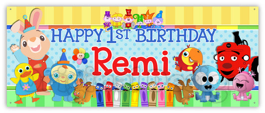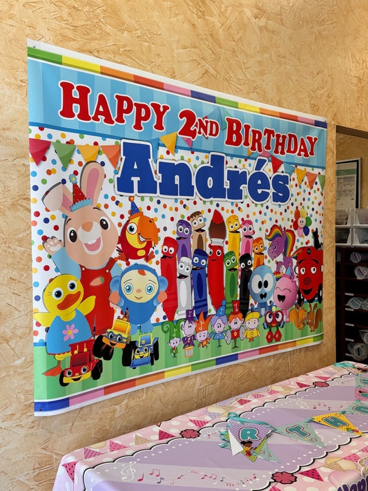 BabyFirstTV favorite friends, Personalized Vinyl Party Backdrop Banner for Cake Table
