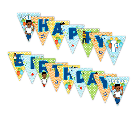 Gracie's Corner© Personalized Happy Birthday Pennant Banner, BOY color scheme