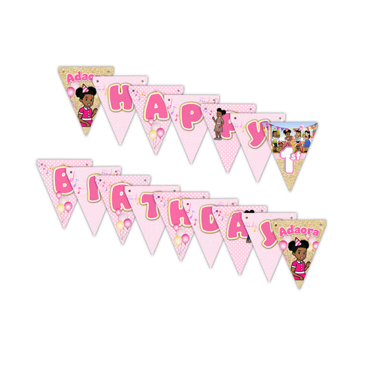 Gracie's Corner© Personalized Happy Birthday Pennant Banner, Pink-Multi Color