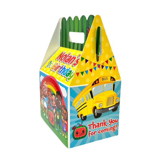 Cocomelon Custom Gable Favor Box, Qty 8 Bus Babies Version