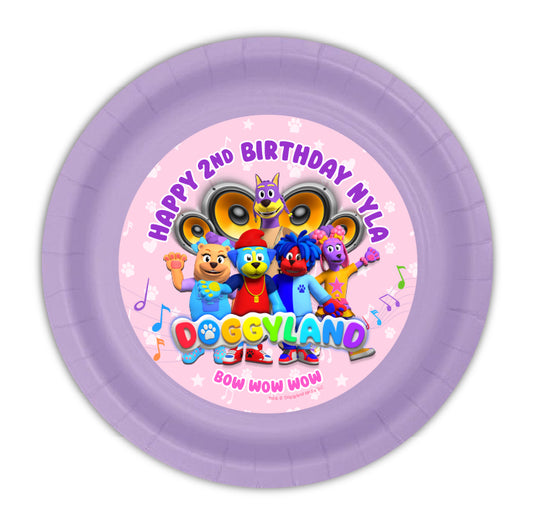 Doggyland Birthday Party Personalized Meal Plates, 12count, Girl Version