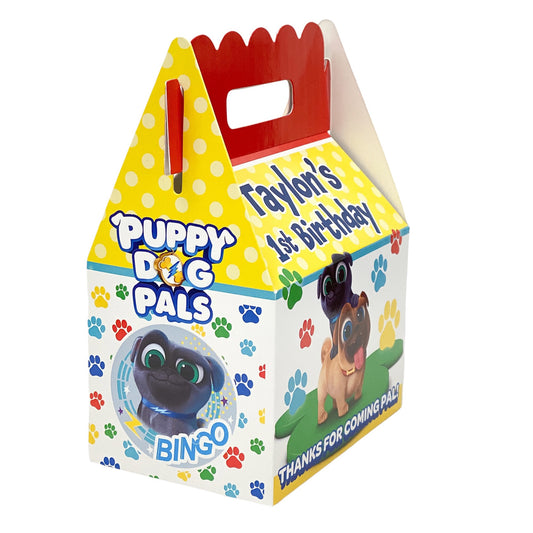Puppy Dog Pals Birthday Party, QTY 8 Personalized Gable Favor Boxes Multi Color