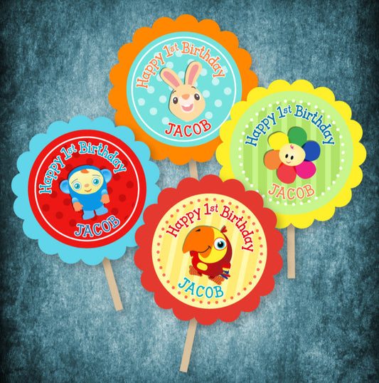 BabyFirst TV Birthday Party, Personalized Cupcake Toppers, pack of 12