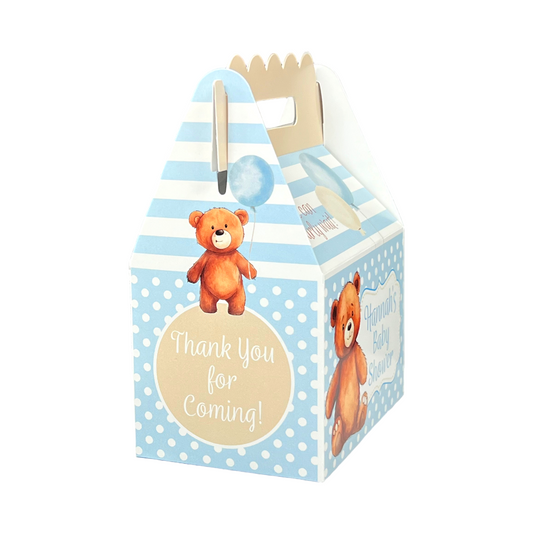 Baby Shower, Gender Reveal, Classic Teddy Bear, Baby Boy, Personalized Gable Favor Boxes, pack of 8