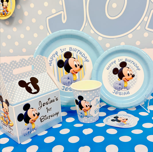 Baby Mickey Mouse First Birthday Personalized Popcorn Box, pack of 8