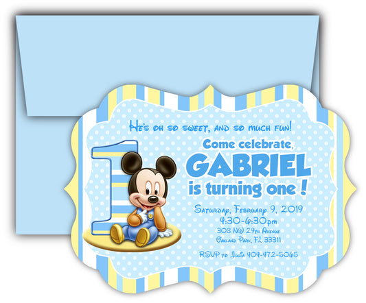 Baby Mickey Mouse First Birthday Die Cut Invitation, Set of 12