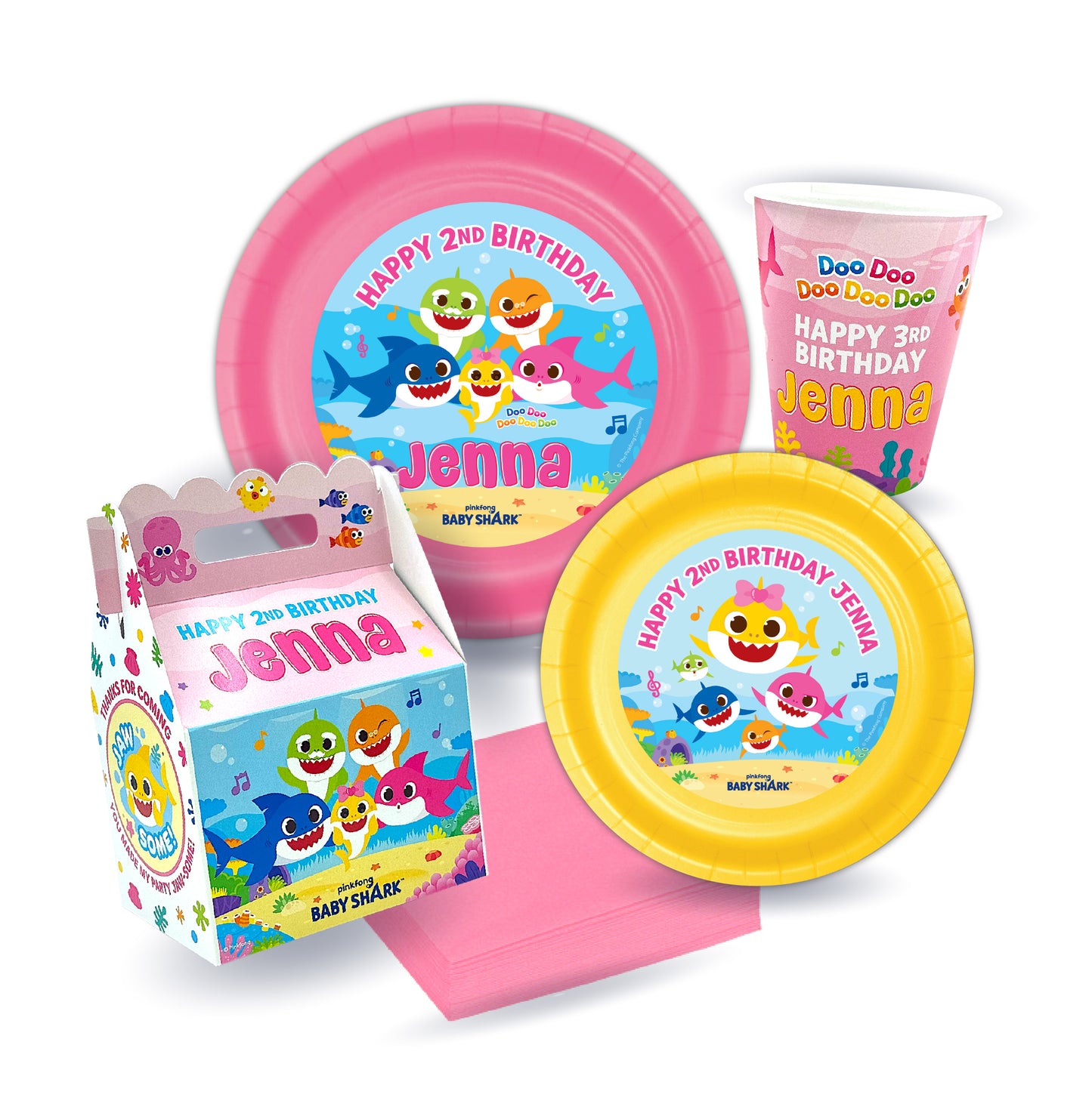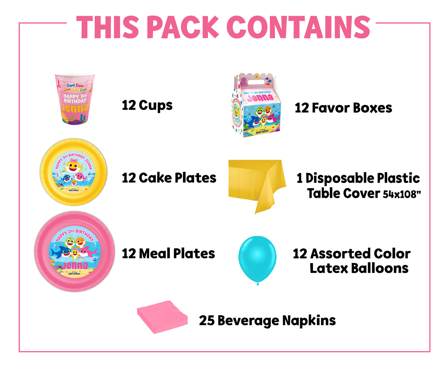 Baby Shark Birthday Basics Personalized Party Pack, GIRL, for 12 guests