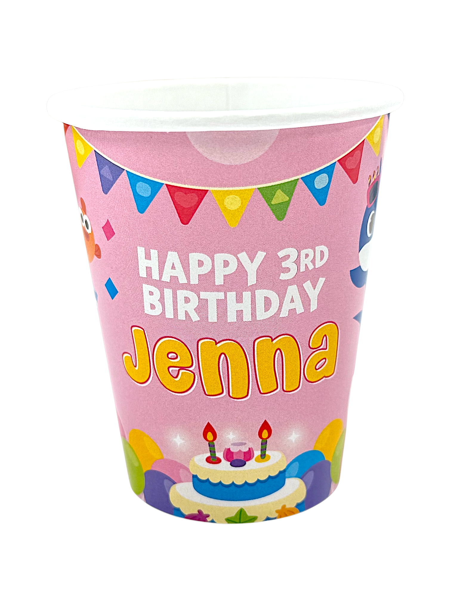 Bring the charm of PinkFong’s Baby Shark to your child’s special day with these custom paper cups, designed just for your special birthday party! Each sturdy cup features a fun, colorful exclusive licensed Baby Shark artwork and is personalized with your child’s name and age.