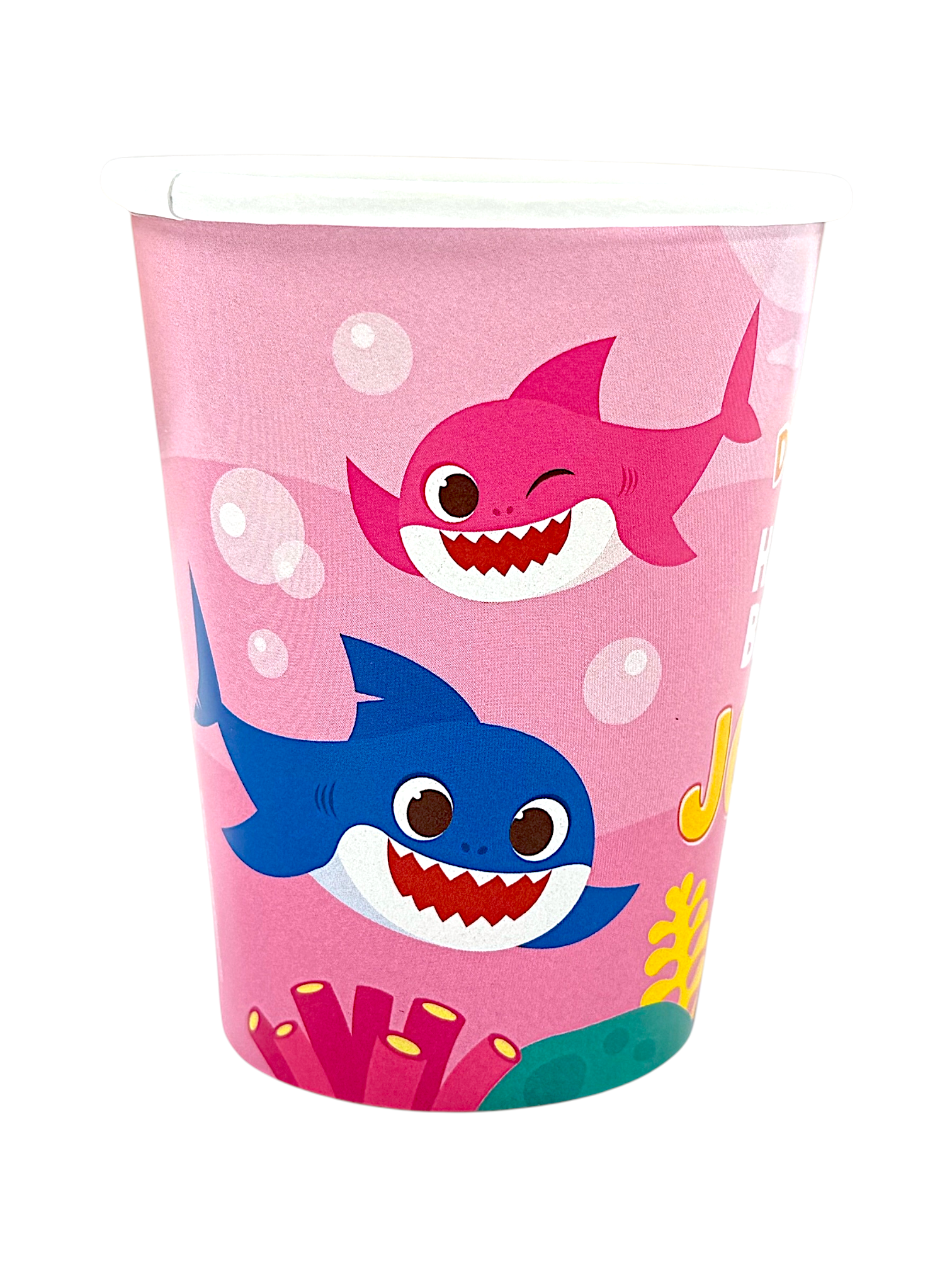 Bring the charm of PinkFong’s Baby Shark to your child’s special day with these custom paper cups, designed just for your special birthday party! Each sturdy cup features a fun, colorful exclusive licensed Baby Shark artwork and is personalized with your child’s name and age.