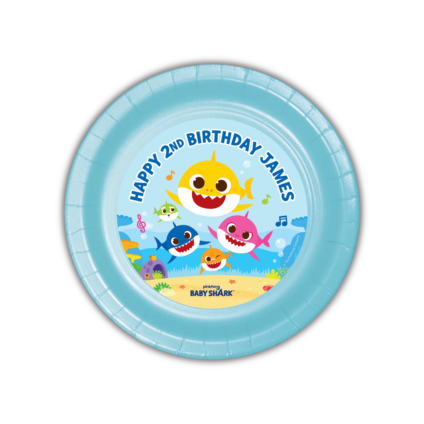 Baby Shark Birthday Personalized Party Plates, 7 inch, 12 count