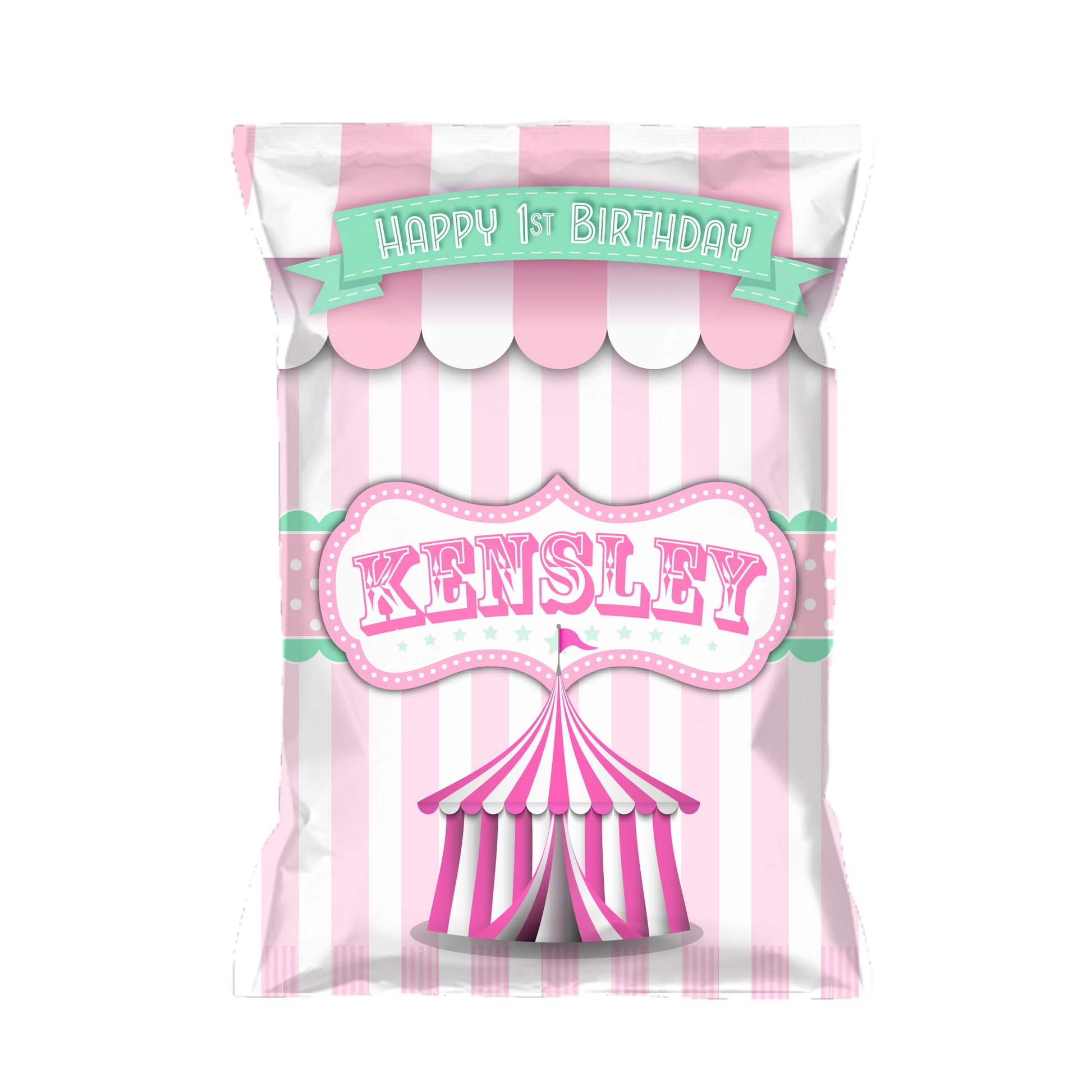 Circus Carnival Carousel Party Custom Chip Bags, Snack Bags, Pouches, SET of 12
